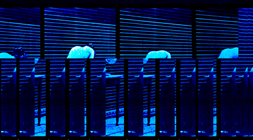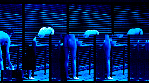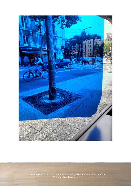 Die blaue Einfärbung der Fotografien verändert den Blick des Betrachters. Die Bilder zeigen nun ein anderes Bild der Wirklichkeit, eines das vom Betrachter normalerweise nicht wahrgenommen wird. Unser Blick hat sich also verändert. Ein ausgeschnittenes weißes Rechteck führt uns ins Bild, am Ende aber auch in die Flächigkeit zurück. Man fragt sich was da unsichtbar ist, was uns vorenthalten wird und weshalb.